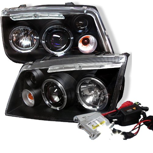 High Performance Xenon HID Volkswagen Jetta Halo LED Projector Headlights with Premium Ballast - Black with 10000K Deep Blue HID
