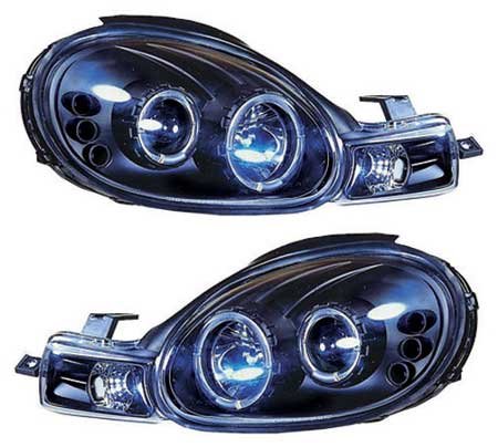 Dodge Neon 2000 2001 2002 Head Lamps, Projector W/ Rings & Corners Black Housing / Clear Projector-1 pair